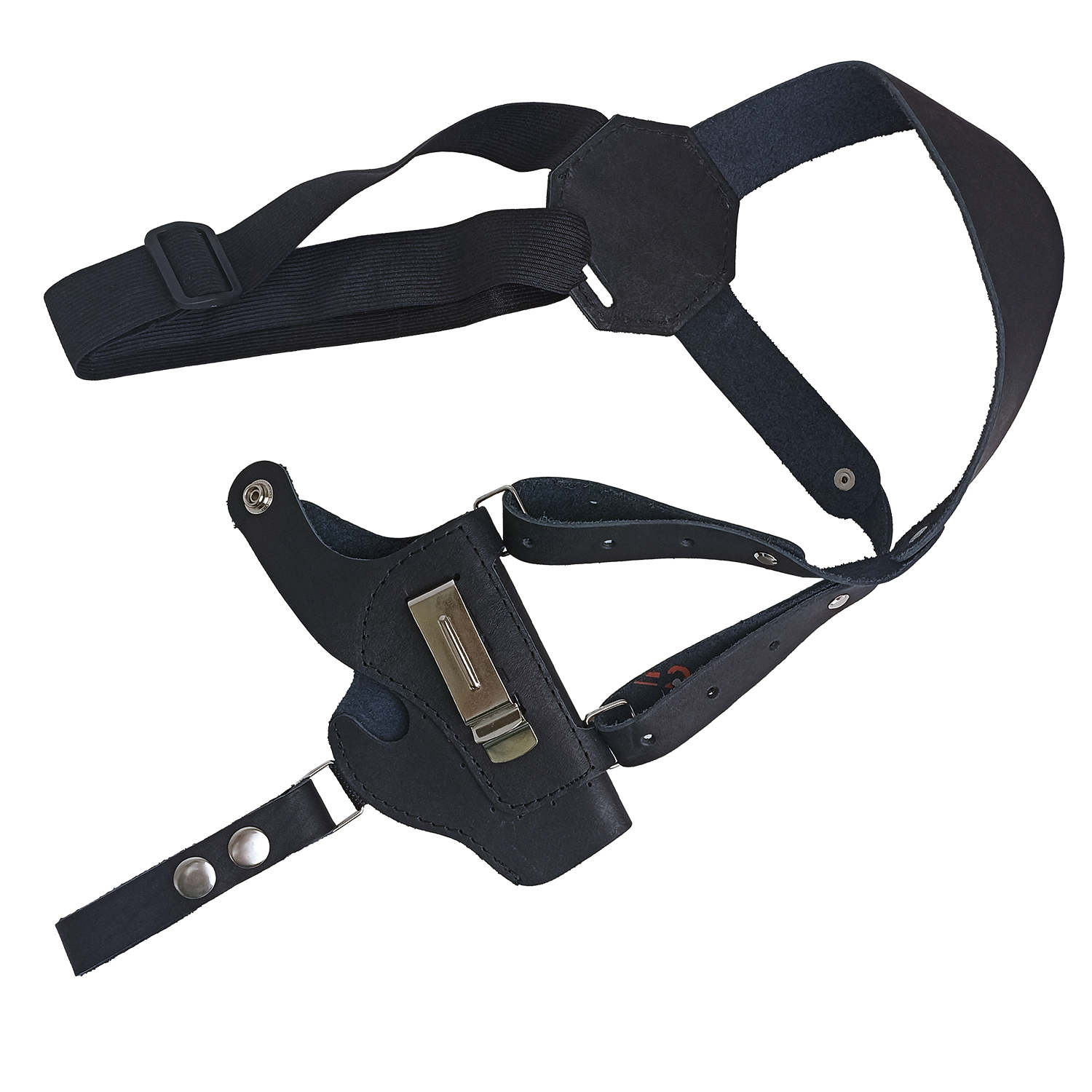 Оперативная кобура ПМ предназначена для скрытого наплечного ношения боевого пистолета Макарова, а так же других пистолетов сделанных на его основе. Фиксация кобуры на плече осуществляется с помощью вязаной резинки шириной 30 мм., с возможностью ее регулировки по длине, нижняя часть кобуры фиксируется на ремне брюк при помощи регулируемого по длине ремешка, для более точная подгонка кобуры по фигуре осуществляется перестановкой ременных винтов. Кобура изготавливается из 100 % натуральной кожи.