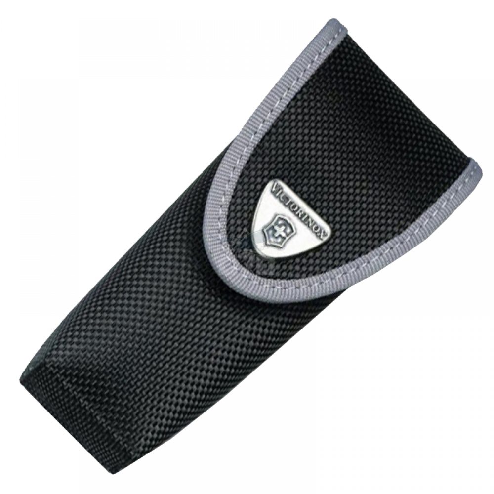 Чехол черного цвета для складных солдатских ножей фирмы Victorinox. Изготовлен из водонепроницаемого нейлона. Надежно защищает нож от осадков, а также пыли и загрязнений. Верхний клапан фиксируется на застежку-липучку Velkro. Чехол крепится на ремень до 6 см. Закрепляется вертикально при помощи крепления петли на обратной стороне изделия. Данный чехол предназначен для складных ножей Victorinox длиной до 111 мм и толщиной до 6 слоев. Также изделие имеет внутренний карман для фонаря Maglite Solitaire.