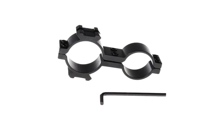 Крепление GM-11 с широким отверстием диаметром 30 мм позволяет закрепить фонарь на оптических приборах. Второе отверстие подходит для большинства фонарей с распространенным диаметром тела 25,4 мм. В конструкции крепления присутствуют 2 планки Picatinny. Благодаря такому креплению, Вы сможете оснастить свое оружие всеми необходимыми аксессуарами и устройствами одновременно.
