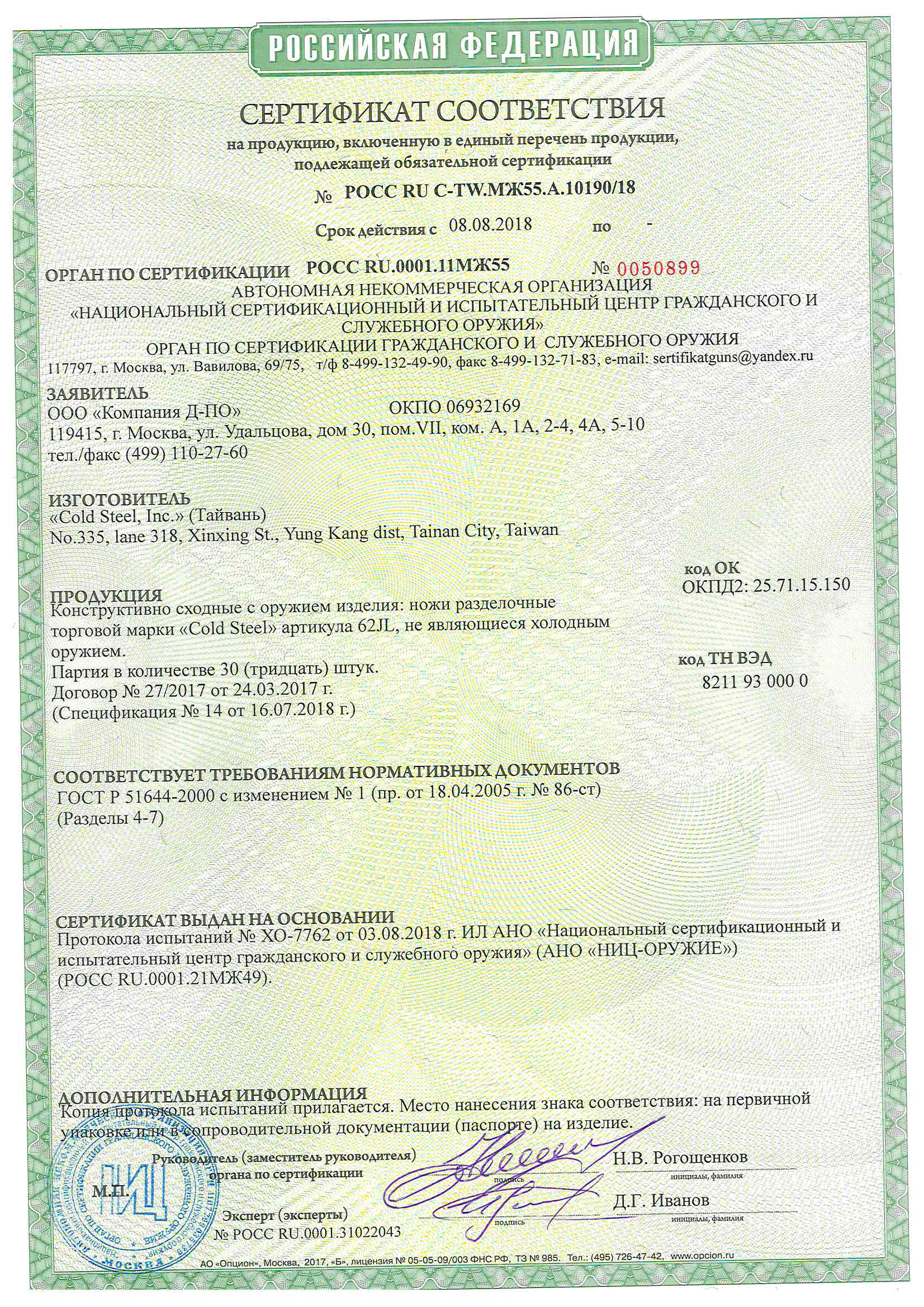 Для изготовления клинка была выбрана нержавеющая инструментальная сталь японской компании Aichi Steel Works. В ее составе содержится до 1,1% углерода, и до 14,5% хрома. Является примерным аналогом стали 440с, но за счет наличия в составе ванадия обладает лучшей износостойкостью. Для AUS10A характерно хорошее удержание режущей кромки, простота в заточке, отличная коррозионная стойкость. Достаточно популярна при производстве ножей бюджетного и среднего ценового уровня.