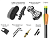 кивер, прицел, полочка, стрела (2 шт), крага, резиновая защита пальцев