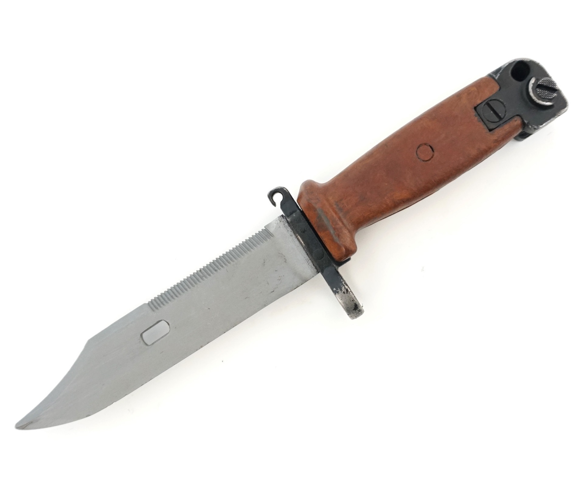 ММГ Штык-ножа АК ШНС-001 (АК74) с коричневой рукояткой с резиновой накладкой на металлических ножнах без пропила в коллекционном исполнении “Люкс” по внешнему виду полностью соответствует боевому аналогу, может быть установлен на макет АК-74. Изделие предназначено для коллекционирования, использования на киносъемках, театральных постановках, реконструкциях значимых исторических событий и демонстрации на уроках.