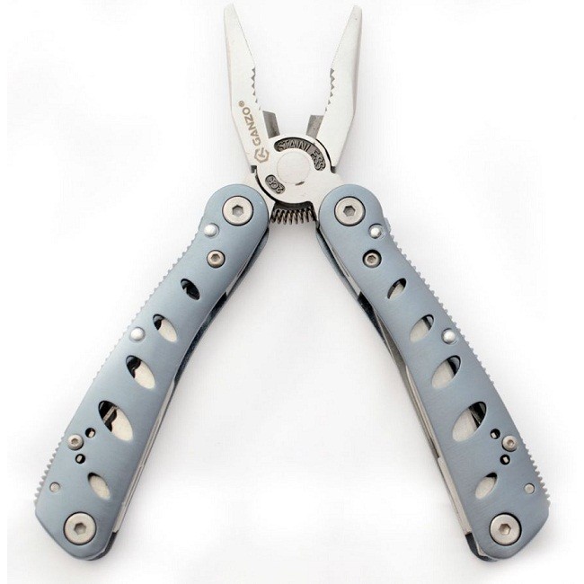 Удобный мультитул G101-H от компании Ganzo. Модель G101-H снабжена подпружиненными плоскогубцами с кусачками, двумя лезвиями, одно из которых имеет серрейторную заточку, пилу по дереву, плоскую и крестообразную отвертки, шило, паз для быстрого снятия изоляции с проводов, открывалку для бутылок, консервный нож и удлинитель для бит. В отдельном блоке, который идет в комплекте с мультитулом G101-H, находится набор бит с адаптером.