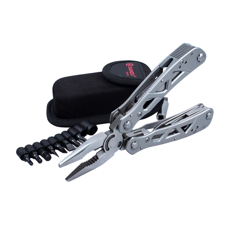 Мультиинструмент Ganzo G112 — самая необходимая вещь в походе и в бытовом обращении. Подойдет для работы с рыболовными снастями, туристическим снаряжением, велосипедами и автомобилями. Незаменим в ремонте. Инструмент изготовлен из нержавеющей высококачественной стали 3Cr13. Основным инструментом в инструменте являются плоскогубцы. Здесь же есть и кусачки, позволяющие плотно захватывать плоские и круглые предметы. В качестве ручек используются рукоятки мультиинструмента, так же в них можно хранить другие инструменты. Набор состоит из двух ножей, шила, линейки, открывашки для бутылок, крестовидной и двух плоских отверток с девятью сменными насадками и магнитного переходника. Для насадок предусмотрено отдельное место в общем органайзере. В качестве дополнительных особенностей можно выделить подпружиненные пассатижи и прочный нейлоновый чехол.