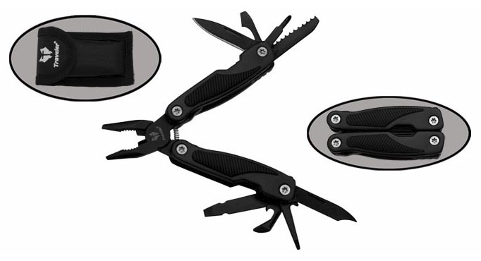 Мультитул занимает в кармане рюкзака или бардачке автомобиля совсем не много места, но может заменить собой десятки инструментов. Мультиинструмент TM9607 - многофункциональная модель для проведения мелкого ремонта. Инструменты: плоскогубцы, небольшая пила, крестовая и шлицевая отвертки, консервный нож, открывалка для бутылок, пилка для ногтей. Для более надёжного и удобного удержания рукоять снабжена накладками из резинопластика. В комплекте с мультитулом идёт чехол из нейлона.