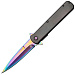 Складной полуавтоматический нож с клинком стилетного типа изящен своей простотой. Строгий узкий клинок изготовлен из нержавеющей стали и имеет достаточную прочность для выполнения повседневных задач. Мгновенное и легкое открытие обеспечивает специальный пружинный механизм, скрытый в одном из лайнеров, а надежная фиксация в открытом положении достигается использованием замка "liner-lock". Для обеспечения безопасности на клинке использованы двусторонние выступы, которые в раскрытом положении образуют развитые подпальцевые упоры, также они служат для открывания ножа. У ножа прямая рукоять, с накладками из полированного алюминия, покрыта черным титаном и удобно лежит в руке, а расположенная на ней клипса надежно удержит нож на кармане или на поясе.