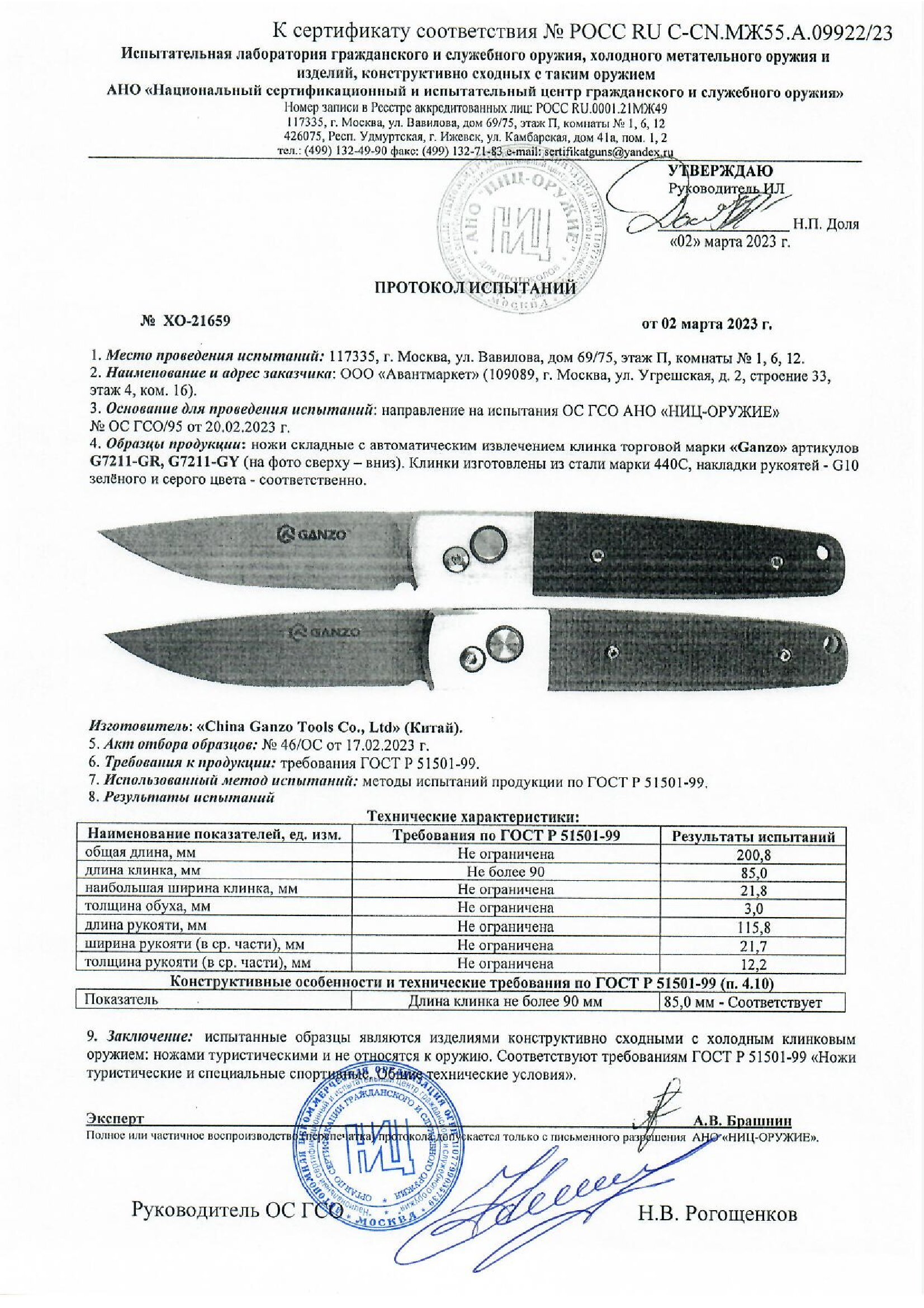 Поскольку нож Ganzo 7211 — складная модель, он оснащен запирающим механизмом, который удерживает клинок в нужном положении. В данном случае используется замок Auto Lock, позволяющий быстро открывать нож одной рукой и полностью исключающий случайное изменение положения клинка.