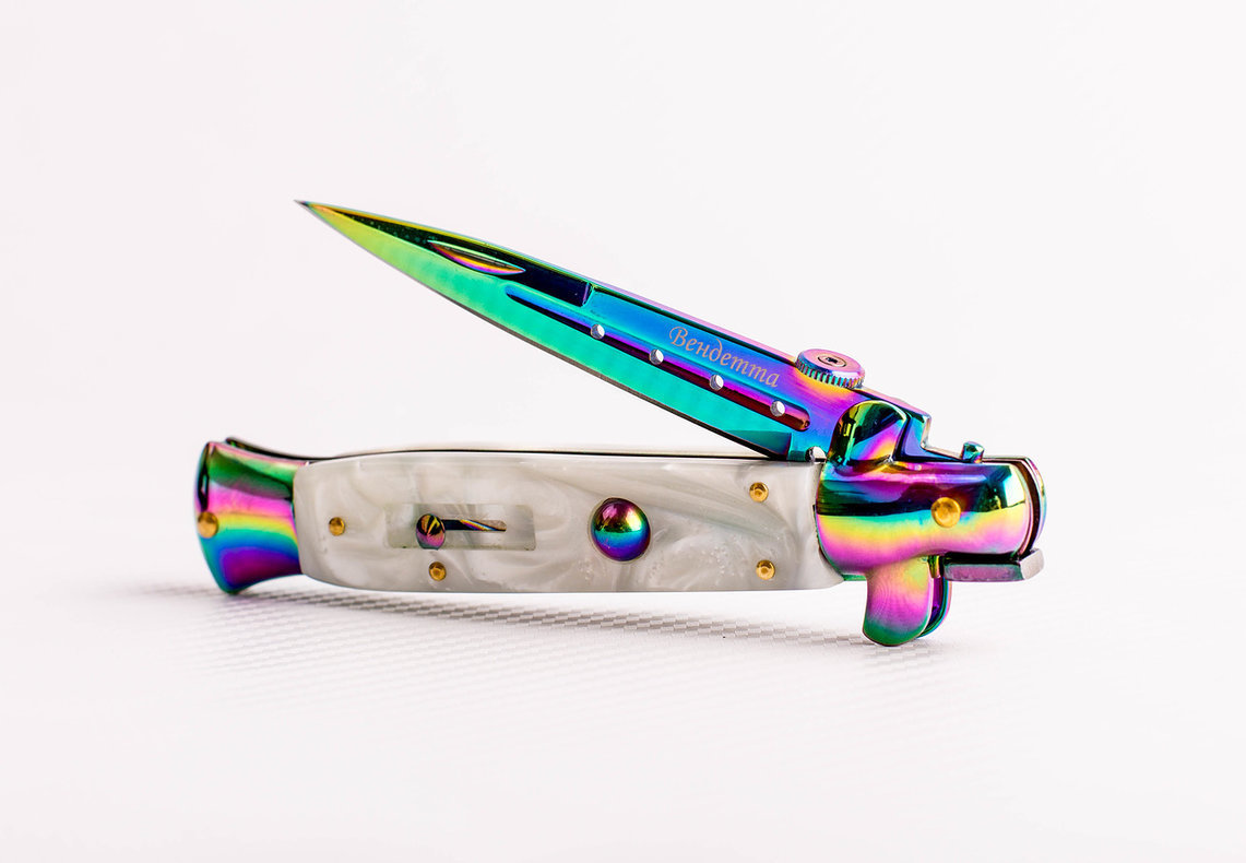 Нож выкидной Вендетта B279-741 white - удобная рукоять и надежный механизм выброса клинка позволяют по достоинству оценить удобство данного ножа!