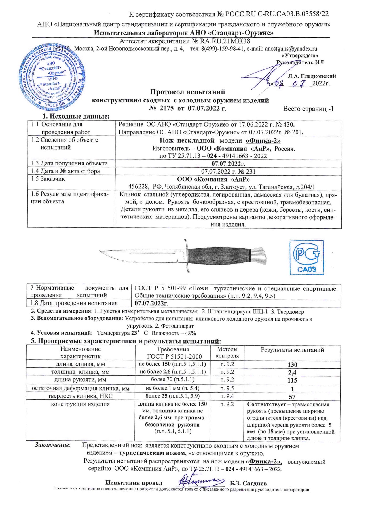 • Конструкция ножа: С фиксированным клинком