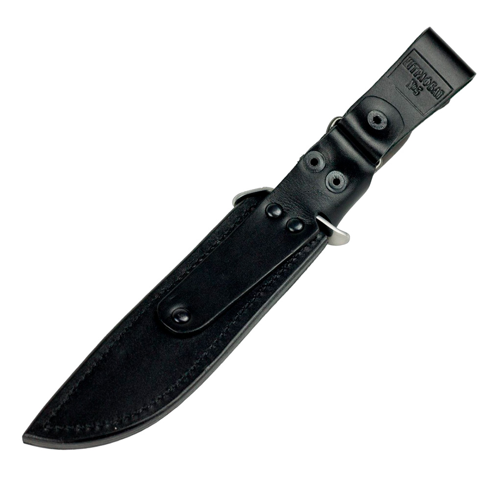 Универсальный, очень легкий нож средней величины с развитой стальной гардой классического типа. Нож прекрасно сбалансирован. Неширокий клинок с обушком популярной формы «лещиком», имеет вогнутые линзовидные спуски на половину ширины клинка, образующие прекрасно режущее лезвие. На голомени с обеих сторон клинка выбраны узкие долы, добавляющие жесткости клинку. Небольшая эргономичная рукоять на удивление хорошо ложится даже в большую ладонь. А расширенная головка рукояти хорошо способствует этому. Монтаж клинка сквозной, неразборный. Прототипом ножа является «Нож разведчика» образца 1940 г. Заслуженно пользуется популярностью у широкого круга покупателей.