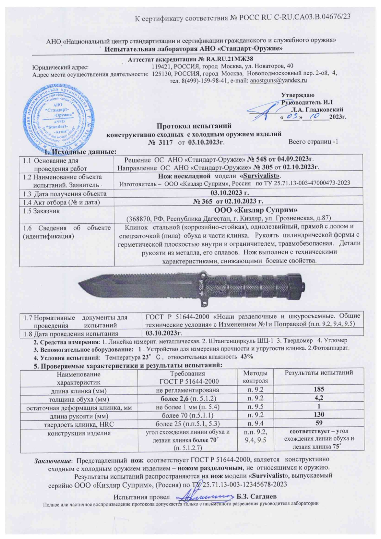 • Производитель: Kizlyar Supreme (Кизляр Суприм)