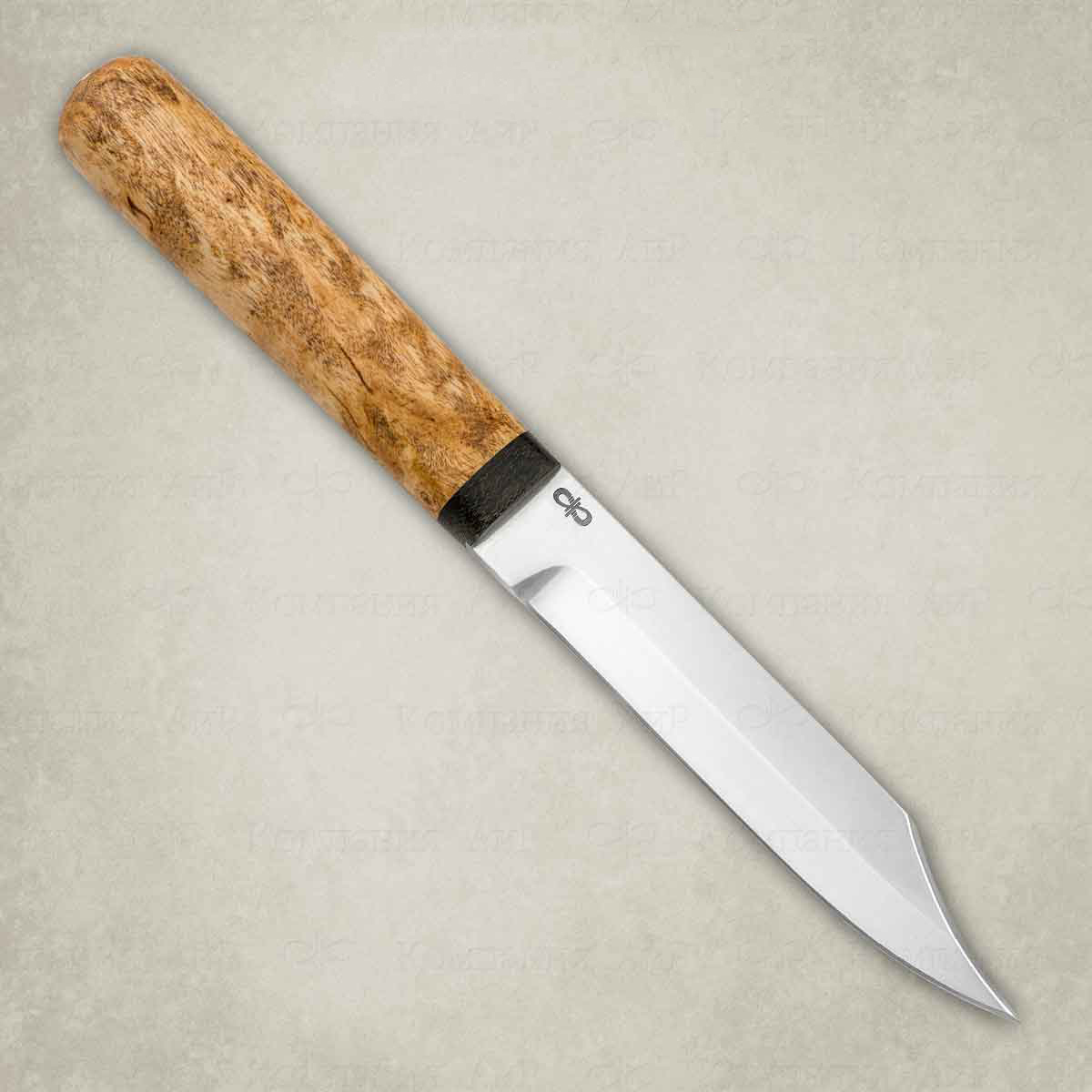 Фиксированный нож, который хорошо подойдет для использования в широком спектре задач обладает отличными режущими свойствами и коррозионной стойкостью. Клинок изготовлен из высококачественной нержавеющей стали, рукоять выполнена из карельской березы. Данный инструмент обладает отличными режущими свойствами и высокой прочностью. Практичен и удобен в использовании. Страной-производителем является Россия.