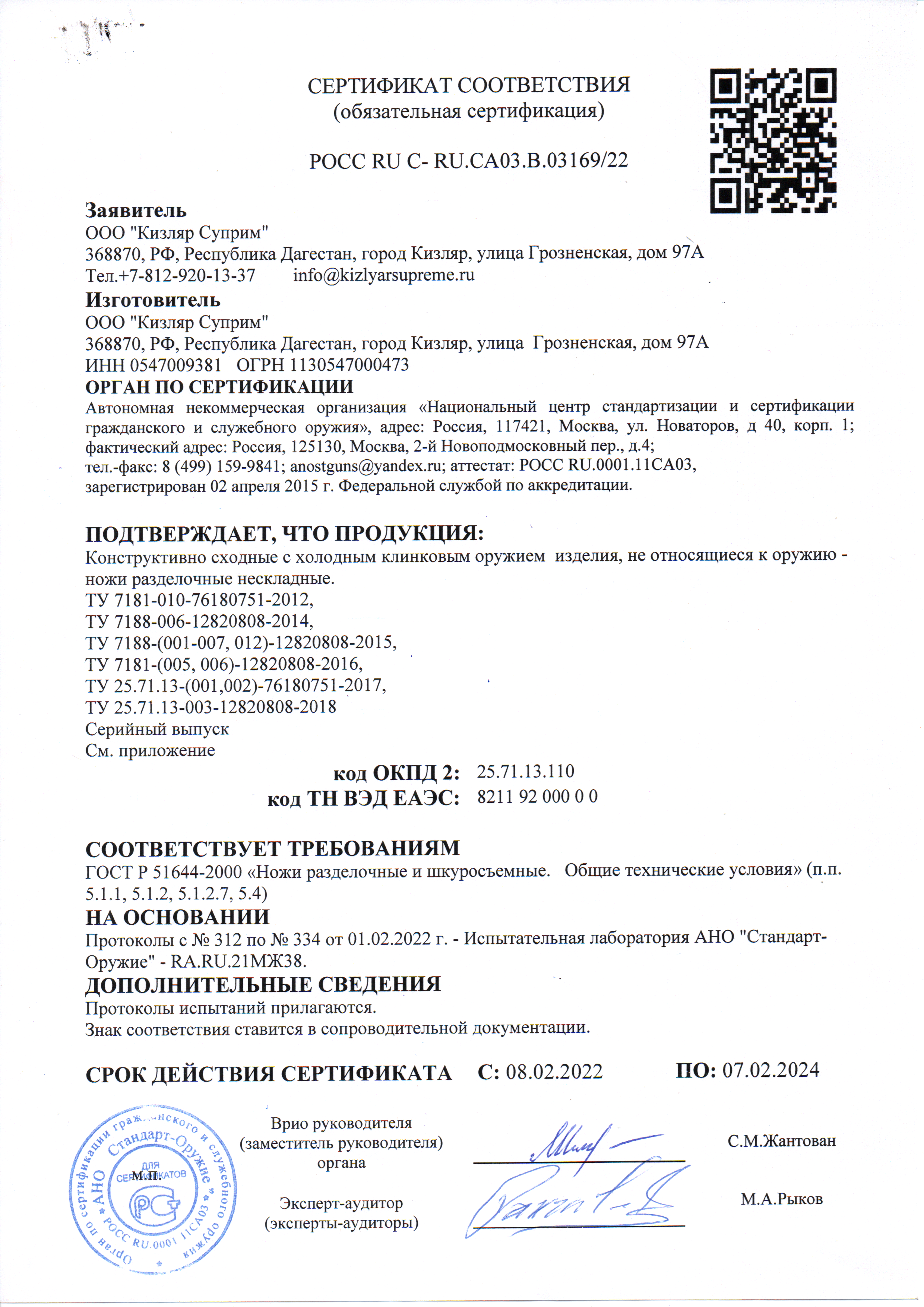 • Производитель: Kizlyar Supreme (Кизляр Суприм)