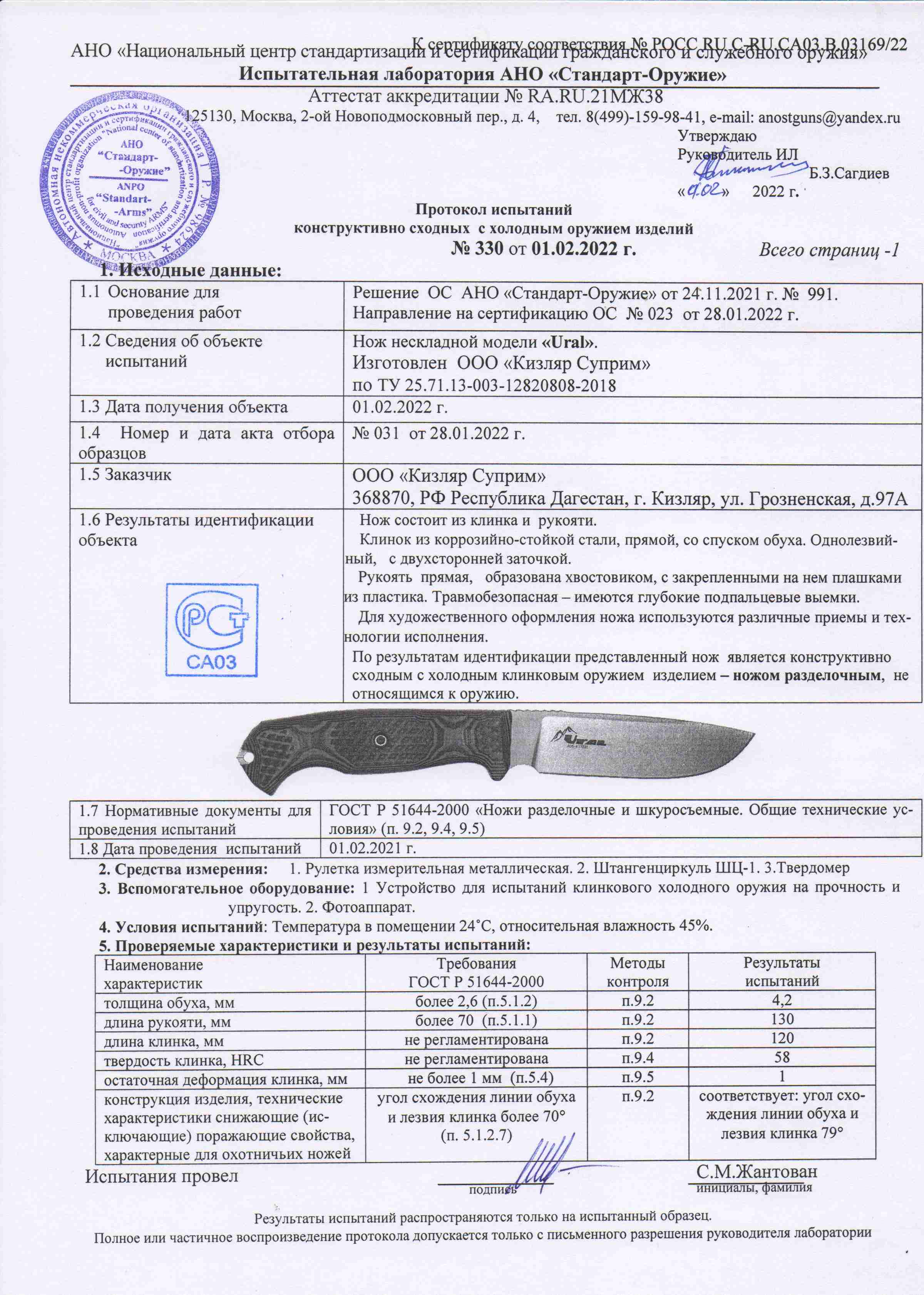 • Конструкция ножа: С фиксированным клинком