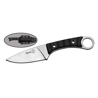 Нож "Крот" относится к серии универсальных многофункциональных ножей. Такому ножу всегда найдется работа в городских условиях и на полевом выезде. Крот представляет собой нож скелетного типа. В качестве накладок для рукояти используется современный ударопрочный полимер. Хвостовик ножа имеет отверстие большого диаметра. Эта легкая и компактная модель оснащена пластиковыми ножнами с универсальной клипсой. Благодаря клипсе, нож имеет множество вариантов подвеса:  -Классический вертикальный подвес; -Горизонтальный подвес на ремне или на снаряжении; -Подвес на систему МОЛЛЕ; -Шейный подвес. Ножны имеют крепежные отверстия, которые позволяют разместить нож на одежде или снаряжении любым другим способом. За счет этих же отверстий к ножнам можно прикрепить НАЗ (носимый аварийный запас) Несмотря на свои небольшие размеры, нож комфортно ложится  в руку, а компактная рукоять имеет цепкий хват благодаря дополнительным вертикальным насечкам . За счет удобной рукоятки, можно передать на клинок четко рассчитанное усилие при резе и максимальное усилие при совершении колющего удара. При помощи отверстия в тыльной части, нож надежно фиксируется пальцем при прямом и обратном хвате - его практически невозможно выбить из руки.