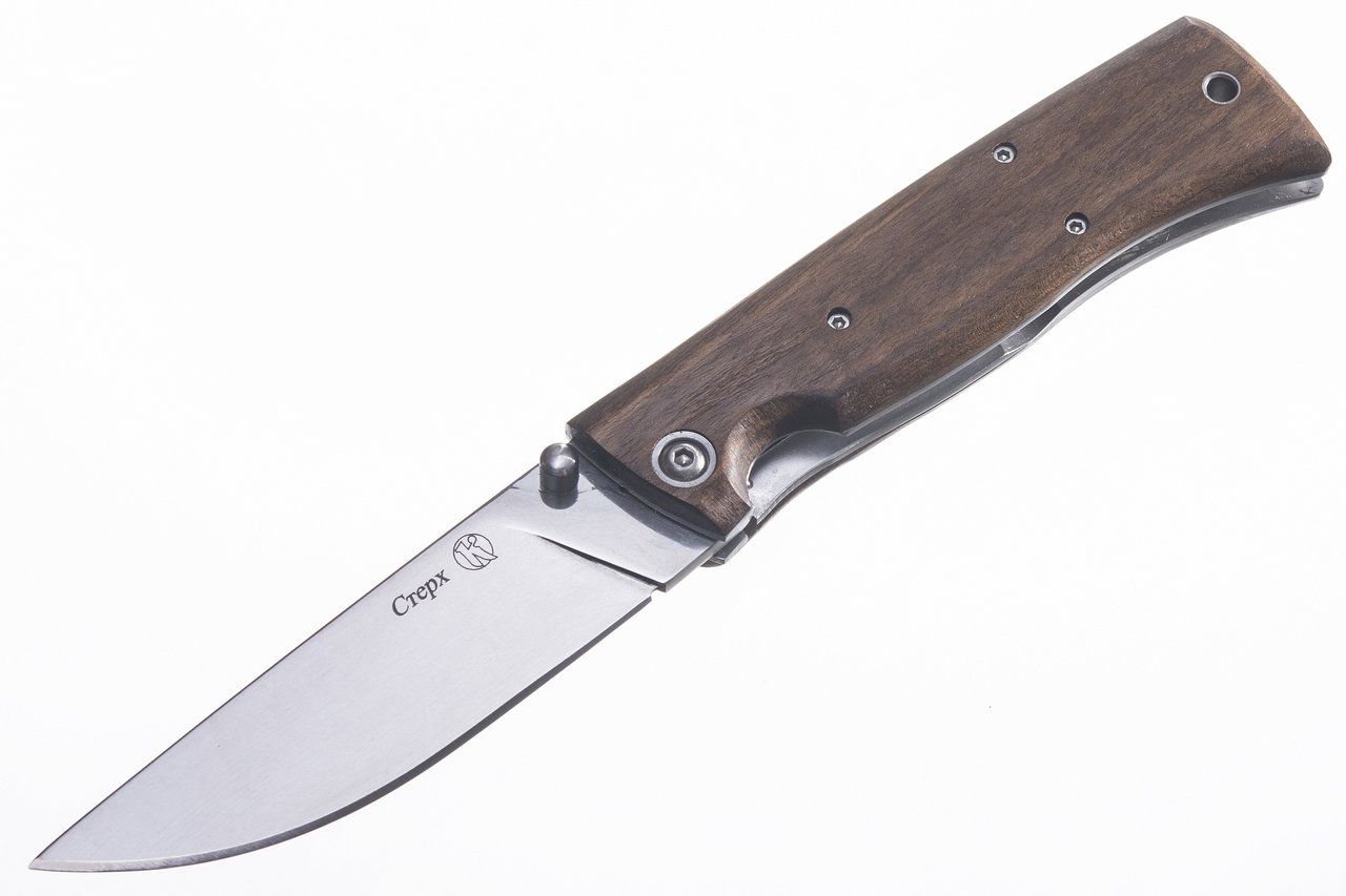 Нож складной «Стерх» рукоять из кавказкого ореха - изготовлен из коррозионно-стойкая сталь AUS-8. Рукоять ножа выполнена из традиционного кавказского ореха. Такое сочетание наделяет нож своей аурой. Пользоваться таким ножом сплошное удовольствие. Нож удобно использовать в несложном походе или автомобильном путешествии. Клинок ножа легко правится с помощью карманной точилки или небольшого мусата. Нож предназначен для работы по продуктам, открывания консервных банок и строгания древесины.