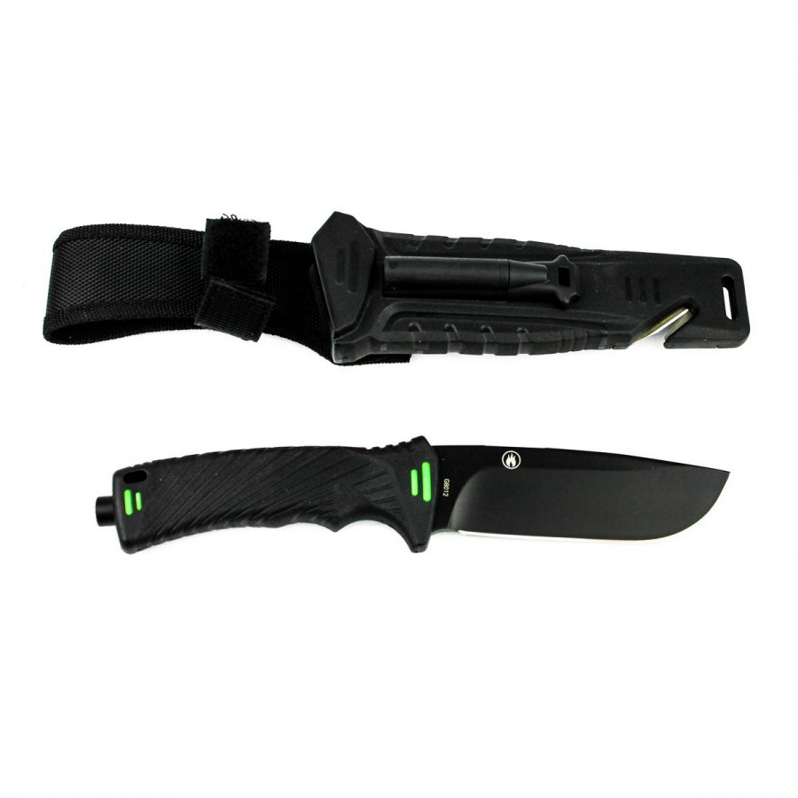 Нож модели Ganzo G8012 стоит взять с собою в путешествие или турпоход, в любую экспедицию. Он создан таким образом, чтобы прийти на помощь своему владельцу даже в самые сложные моменты. Основной материал ножа — сталь марки 7Cr17. Она содержит большое количество углерода и может быть закалена до 57 HRC. При этом, коррозийная стойкость сплава без проблем позволяет использовать его в условиях повышенной сырости. Клинок жестко зафиксирован по отношению к рукоятке, что повышает стойкость ножа к нагрузкам. 11,5 см из общей длины приходится именно на клинок, который имеет прямую заточку. Поверхность лезвия матовая и черная. Помимо того, что такой нож очень стильно выглядит, он вполне может использоваться в тактических целях.