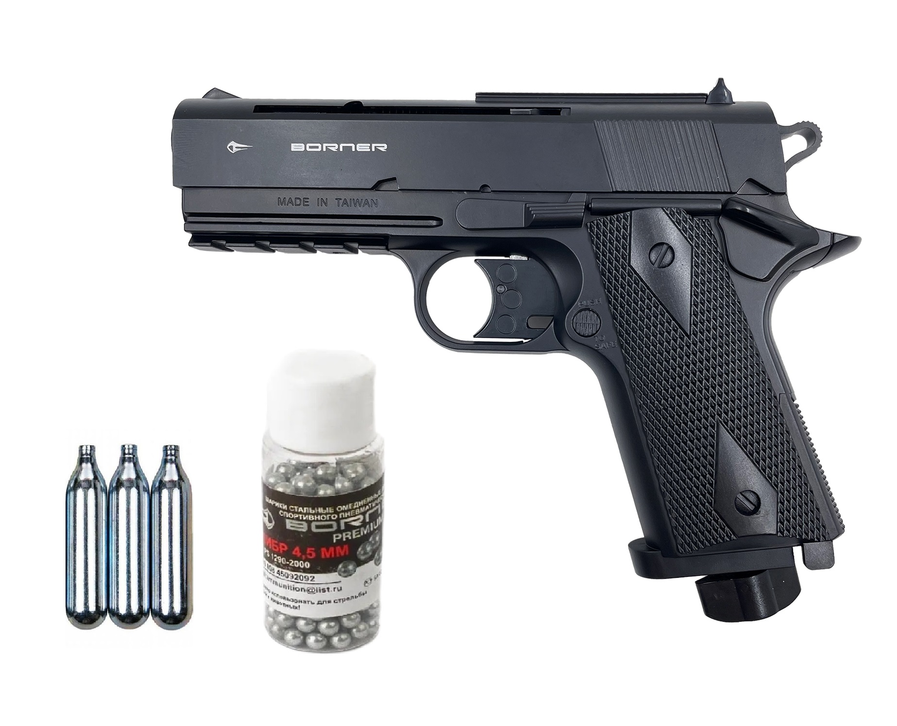 Пистолет пневм. Borner WC401 (баллончики 3 шт + шарики 250 шт) купить в Санкт-Петербурге по цене 6 390 рублей в интернет-магазине Steel-Gun. Получите заказ самовывозом в Санкт-Петербурге бесплатно или закажите доставку в любой регион России транспортными компаниями СДЭК, Яндекс.Доставка или Почтой России. Оплатите онлайн или при получении (при доставке до 7 дней).