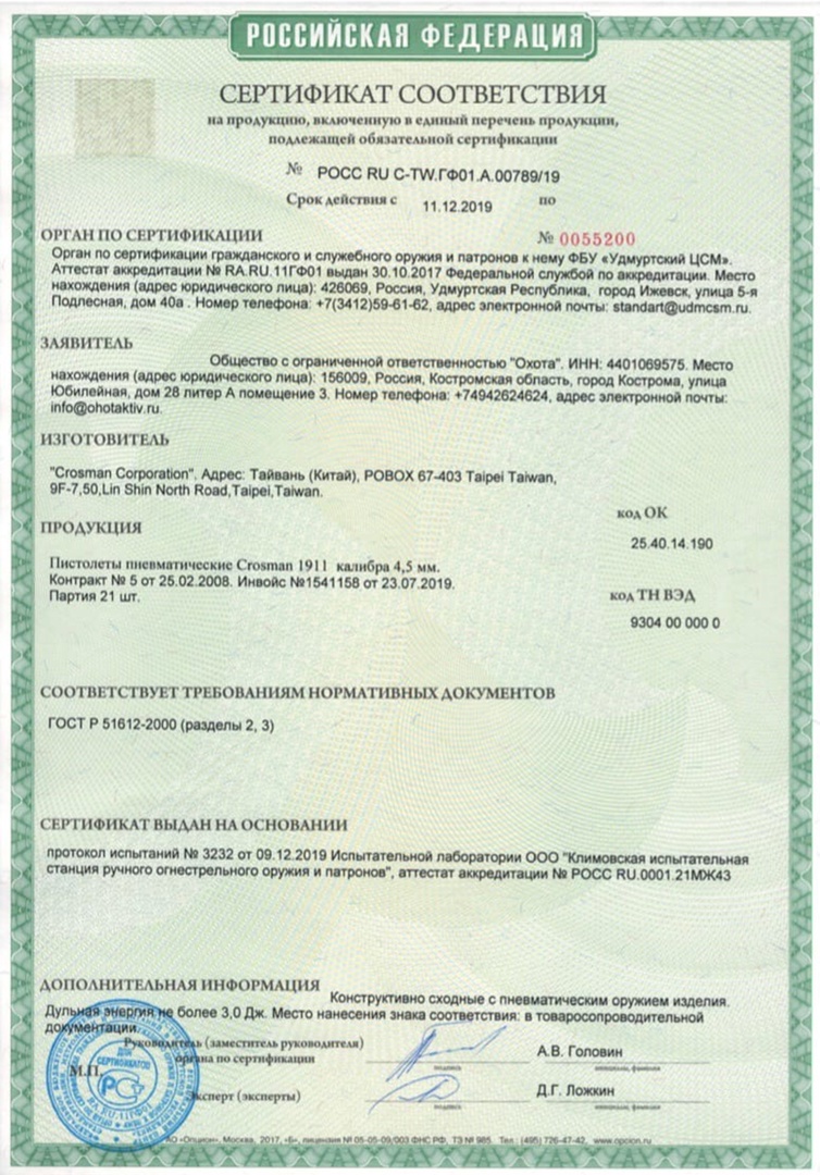 Пистолет пневматический Crosman S1911 калибр 4,5 мм купить в Санкт-Петербурге по цене 4 090 рублей в интернет-магазине Steel-Gun. Получите заказ самовывозом в Санкт-Петербурге бесплатно или закажите доставку в любой регион России транспортными компаниями СДЭК, Яндекс.Доставка или Почтой России. Оплатите онлайн или при получении (при доставке до 7 дней). Подробнее об оплате и доставке. Лицензия на приобретение не требуется. Перед оформлением заказа обязательно уточняйте комплектацию товара по телефону 8 (904) 215-66-30 (в рабочее время) или по e-mail и системе обратной связи (в любое удобное для вас время). Информация от товаре Пистолет пневматический Crosman S1911 калибр 4,5 мм носит ознакомительный характер, характеристики, внешний вид, цвет и комплектация могут быть изменены производителем без уведомления.