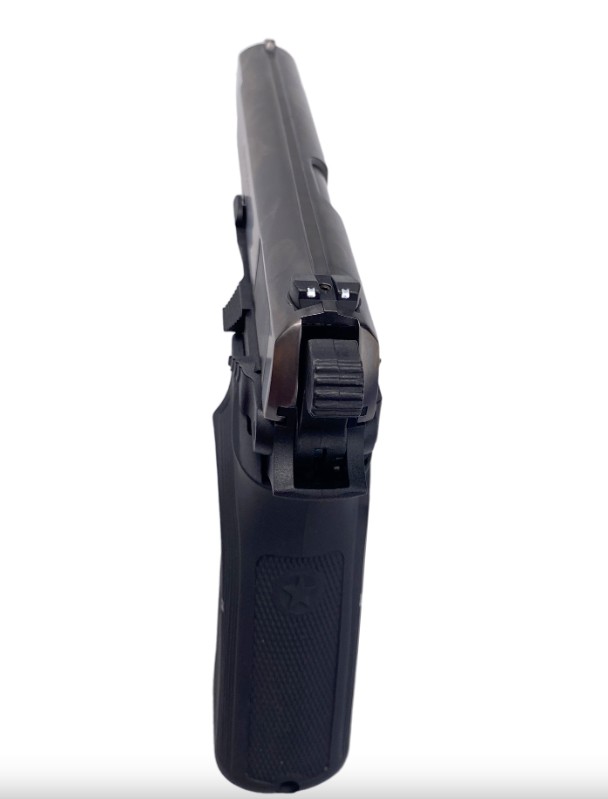 Штатными прицельными приспособлениями, использующимся для неведения, выступают открытый целик и мушка. В рассматриваемом пистолете реализован ударно-спусковой механизм двойного действия, который позволяет вести стрельбу как с предварительным взводом курка, так и самовзводом.