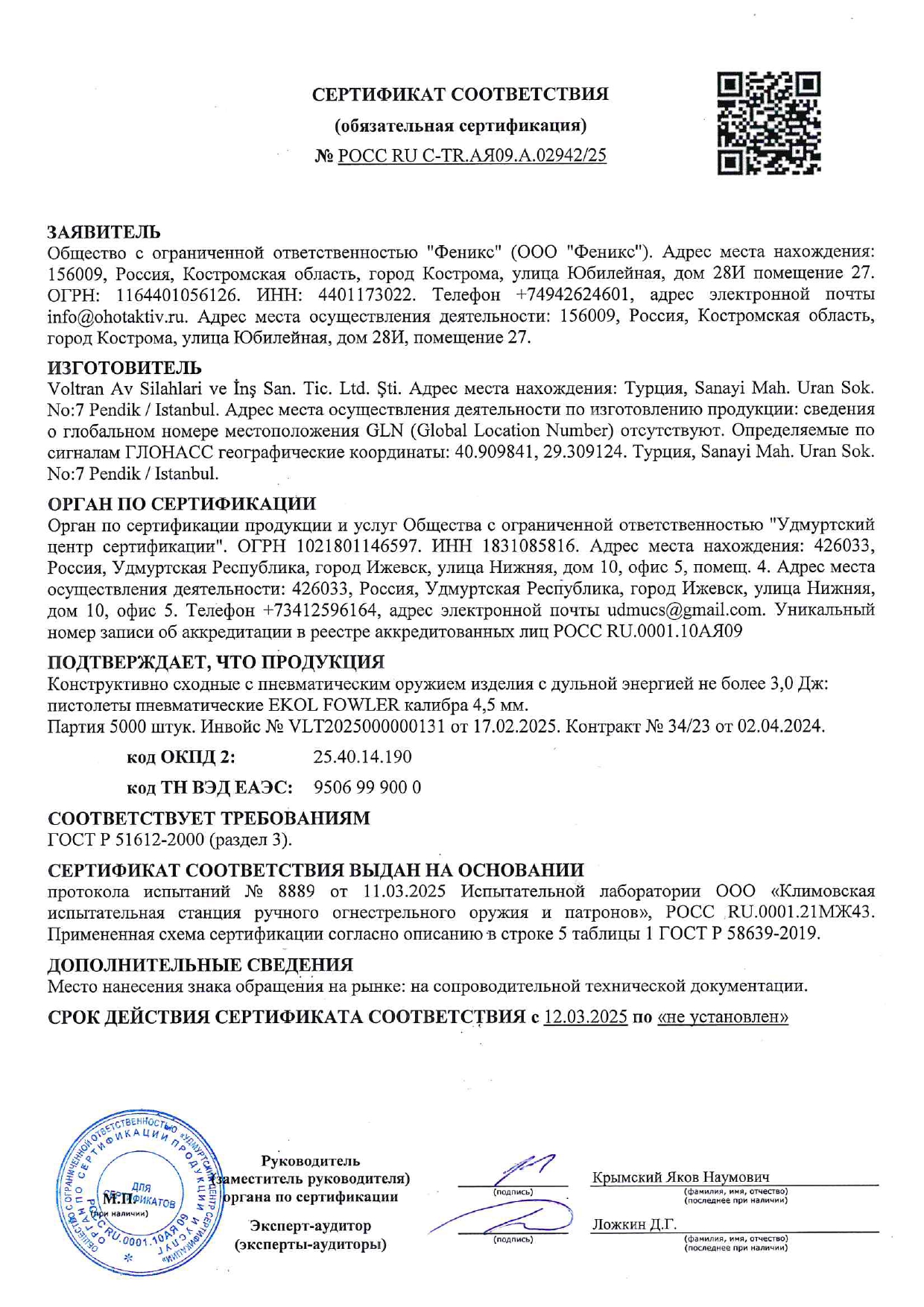 e-mail и системе обратной связи (в любое удобное для вас время). Информация от товаре Пистолет пневматический Ekol Fowler (переломный ствол) носит ознакомительный характер, характеристики, внешний вид, цвет и комплектация могут быть изменены производителем без уведомления.