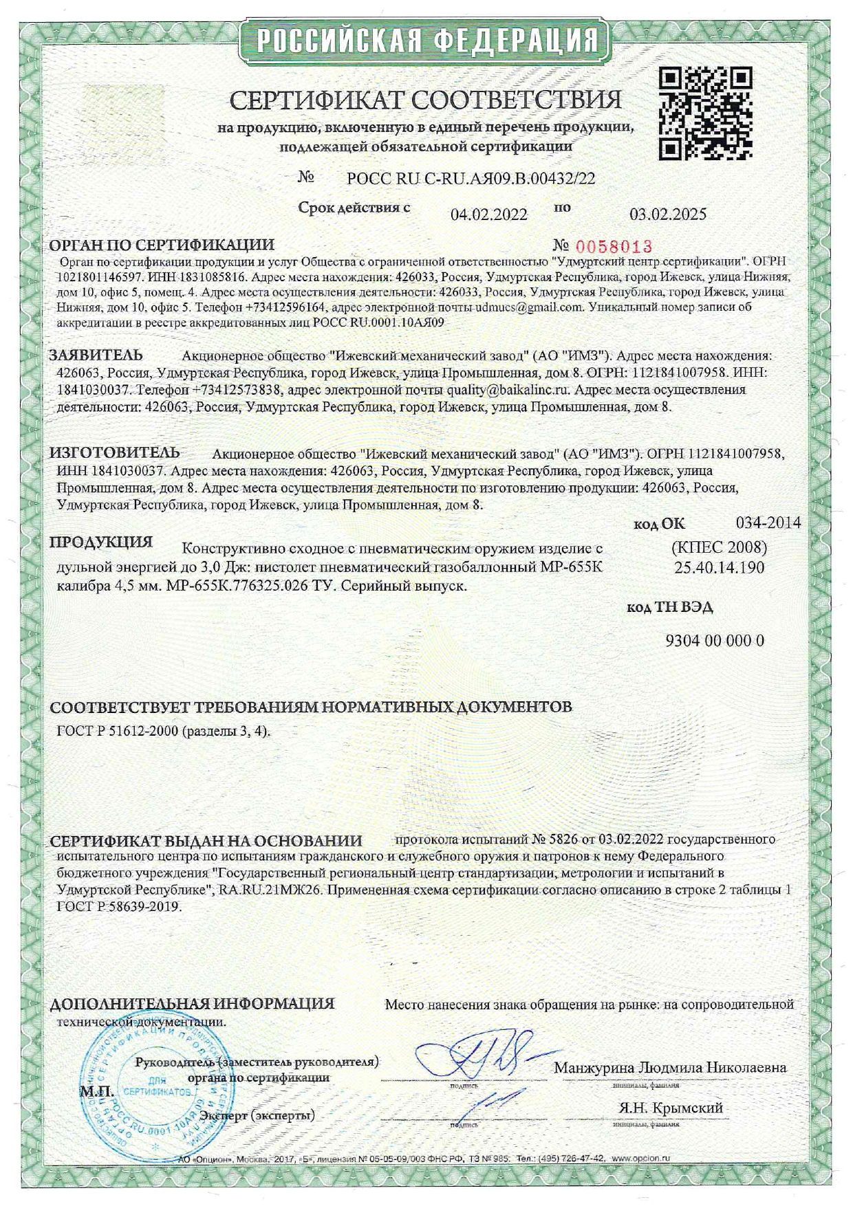 e-mail и системе обратной связи (в любое удобное для вас время). Информация от товаре Пневматический пистолет МР-655 К носит ознакомительный характер, характеристики, внешний вид, цвет и комплектация могут быть изменены производителем без уведомления.