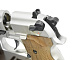 Корпус никелированный, мушка и прицел чёрные, потому целиться достаточно комфортно. Целик регулируемый, для регулировки его применяется шестигранный ключик, вставляющийся в отверстие на верху прицела. Стрелять можно самовзводом либо с предварительным взводом.