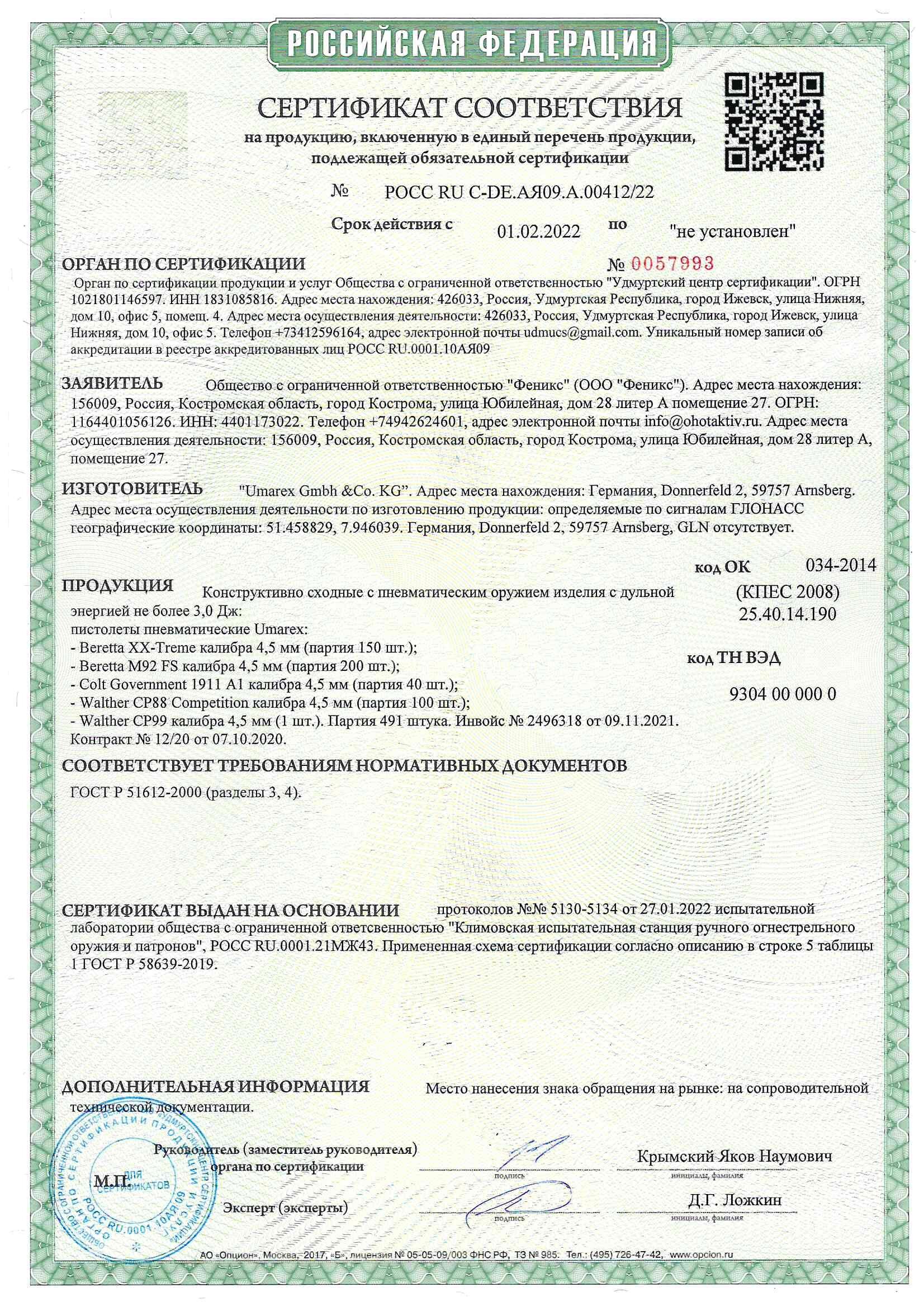 • Источник энергии: Баллончик с газом CO2 12 гр