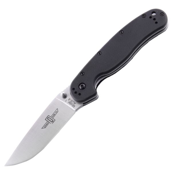 Ontario RAT-1 — модель из серии RAT, американской компании Ontario Knife Company. Эти ножи разрабатывались специалистами по выживанию в экстремальных условиях и рассчитаны на эксплуатацию в таких же ситуациях. Клинок выполнен из AUS-8 — это сталь японского производства, которая за относительно низкую цену дает оптимальное сочетание гибкости и твердости, неплохой рез, а также хорошую антикоррозионную стойкость. Рукоять модели выполнена из термопластика GRN — живучего материала, который хорошо противостоит ударам и открытому огню. К его минусам можно отнести слабую переносимость холодов — при температуре ниже 17 градусов ударная прочность может снизиться, однако, если говорить об остальных характеристиках данного материала, он сполна оправдывает свою стоимость.