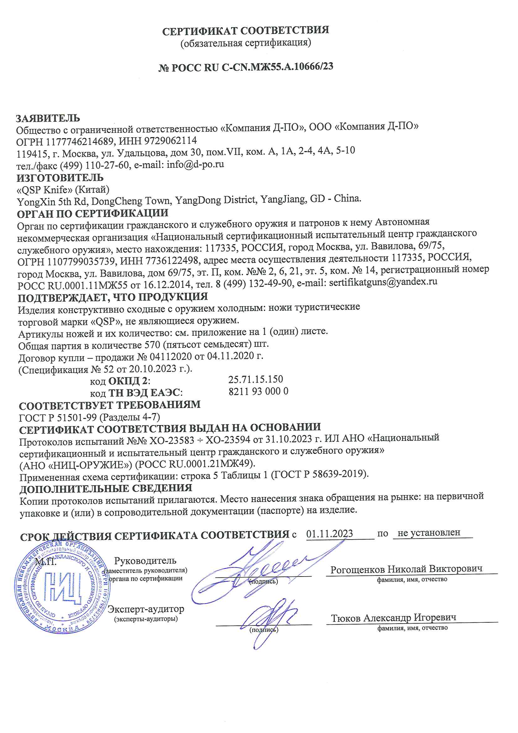 Cкладной нож от компании QSP отлично подойдет как для повседневного применения, так и для турпохода, охоты, рыбалки, в качестве вспомогательного инструмента в военно-спортивных играх. Надежный замок типа Liner-Lock обеспечивает надежную фиксацию клинка. Рукоять ножа изготовлена из стеклотекстолита марки G10, черного цвета.