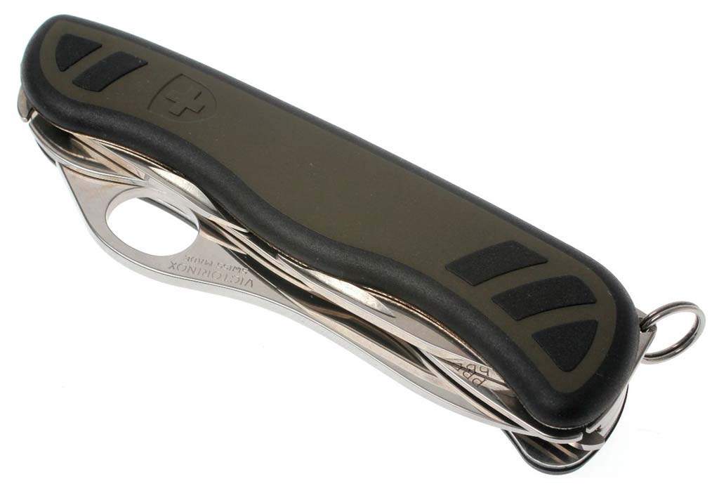 Благодаря специальной петле на клинке швейцарский нож Victorinox удобно открывать одной рукой. Такой клинок можно легко раскрыть даже в перчатках. Серрейторная (волнистая) заточка лезвия делает клинок более удобным для разрезания материалов, которые обычному ножу поддаются плохо, таких, как например: канаты, тросы, ремни безопасности.