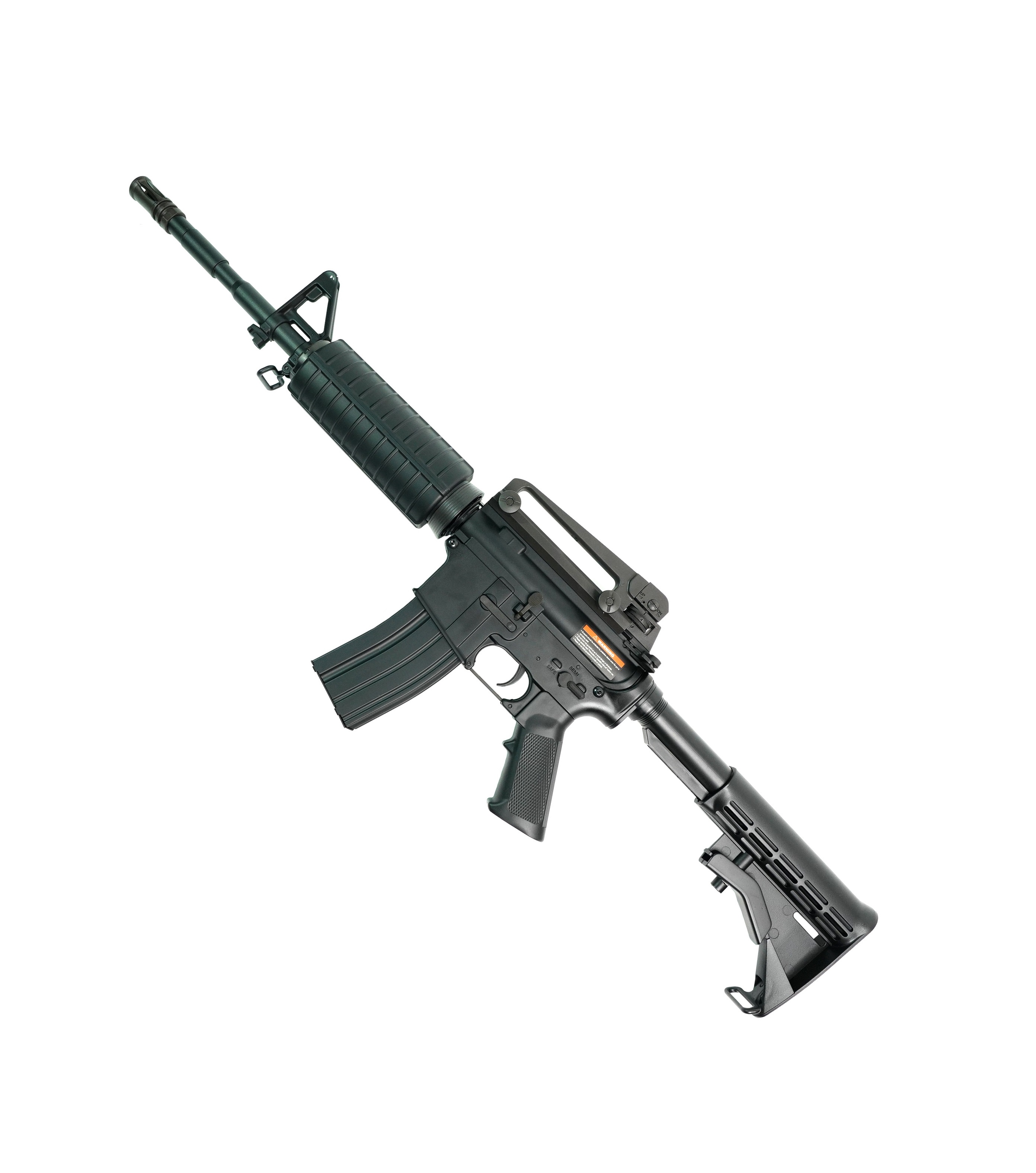 Страйкбольный карабин M4A1 от китайской компании Cyma представляет собой точную копию оригинального карабина M4. Корпус привода изготовлен из прочного ABS-пластика. Внутри карабина находится гирбокс второй версии, выполненный из алюминиевого сплава. Все компоненты гирбокса стандартные и могут быть заменены на запчасти от других производителей, что обеспечивает высокую ремонтопригодность и возможности для тюнинга. Штатные прицельные приспособления выполнены в виде мушки и диоптра.