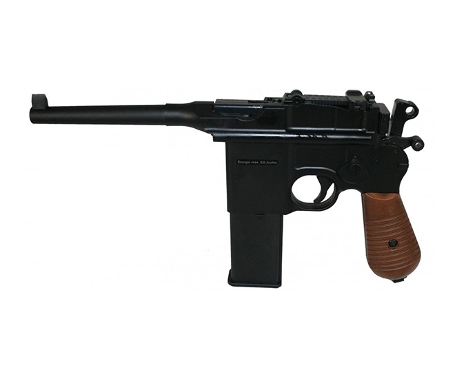 Пневматический пистолет системы Маузер, стреляющий в полуавтоматическом режиме. Отличительной чертой модели является объемный магазин на 30 шаров. Внешний вид пневматического пистолета Mauser практически не отличим от боевого. Корпус выполнен из прочного пластика, он облегчает вес пистолета, а благодаря стальной начинке - модель еще и очень надежная. Страной-производителем является Китай.