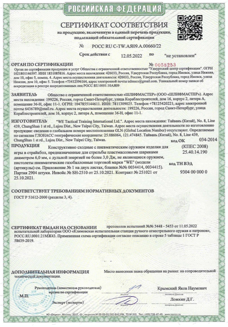 Является репликой пистолета GLOCK 17. Предназначен для использования в спортивной и развлекательной стрельбе, изготовлен компанией WE. Цвет – песочный. Для работы используется стандартный Green Gas. Огонь – только одиночный. Во весу близок к своему боевому аналогу. В комплекте один магазин. Выпущен в нескольких версиях, Gen3 – стандартная комплектация.